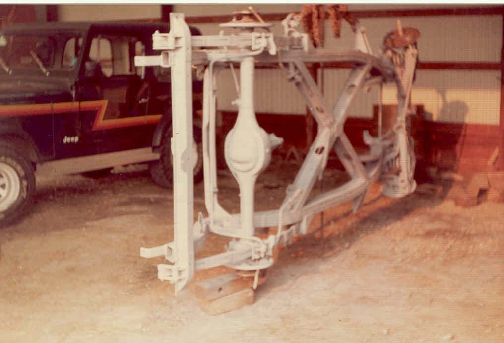 After three weeks the doors, hood, trunk lid and body were removed from the chassis. We spent that winter removing layers and layers of paint from all the parts and body which sat on hay bales in the garage. After spending that winter removing layers and layers of paint and seeing how many original parts we had, we decided to take on the job of restoring the car.